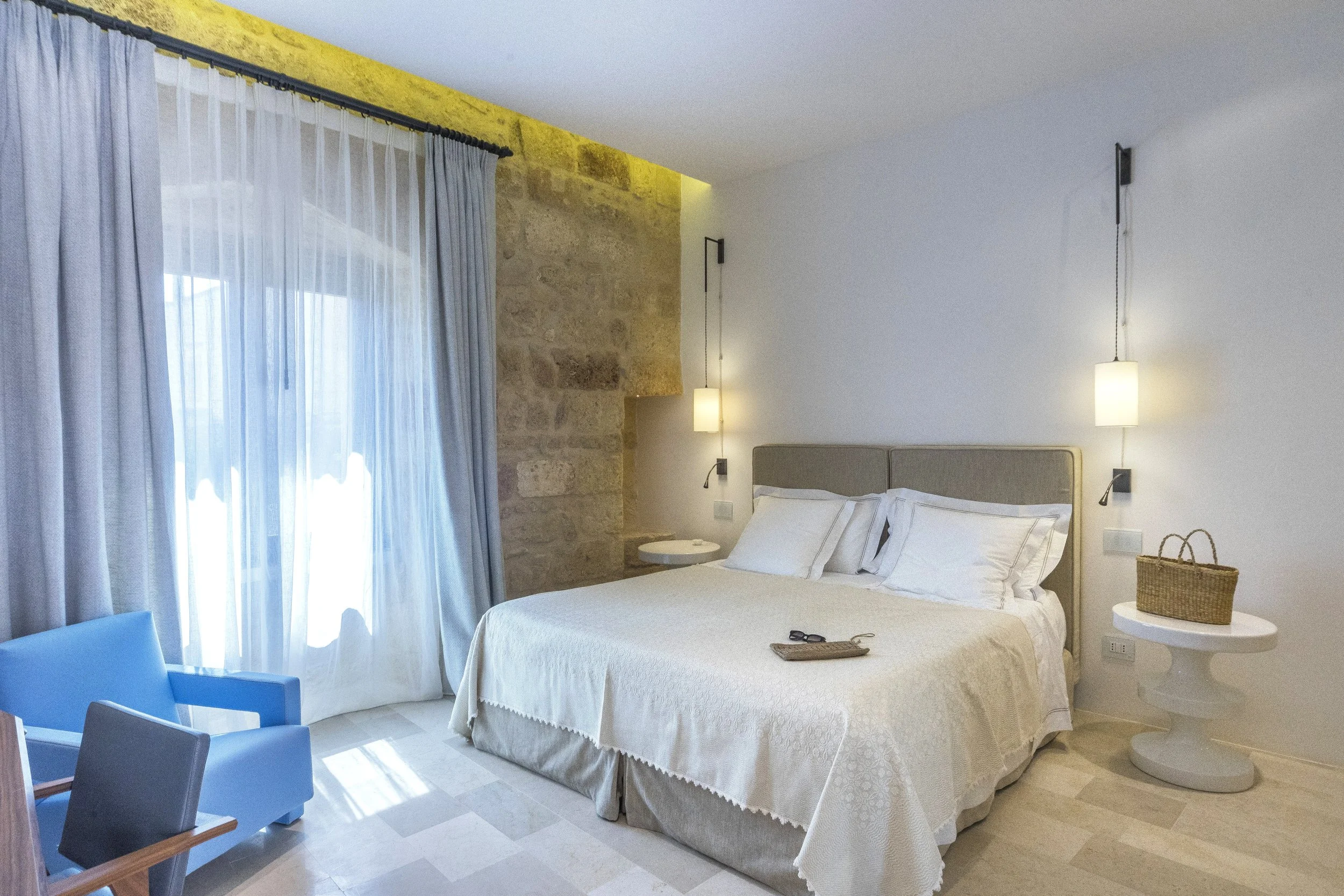 Castello di Ugento , once a Castle, is a renovated unique historic boutique 5 Star hotel in Puglia – a contemporary hideaway encased within golden 17th-century walls. The rooms and suites have all been lovingly curated with modern pieces from talented Italian designers alongside antiques and vintage finds as well as handmade Italian ‘noce Canaletto’ – high-quality walnut – armoires. All rooms feature king-size beds and some which can be twinned.